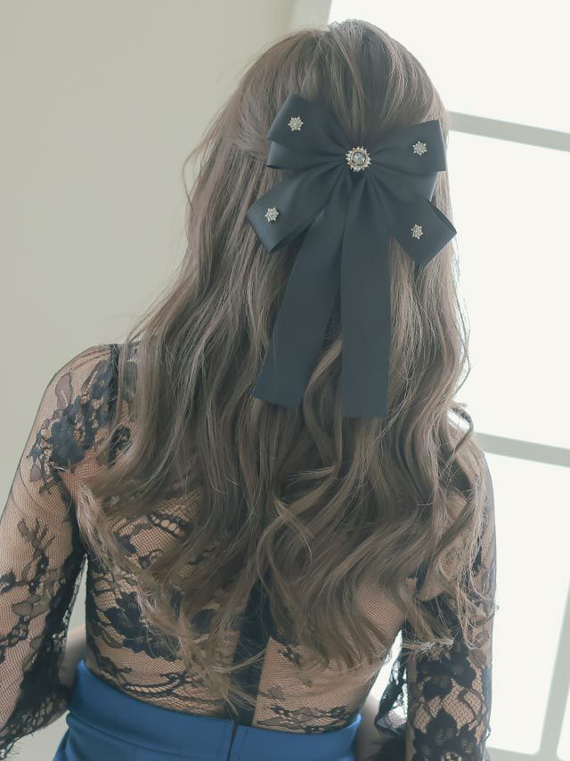 3. ビジュー付きロングリボンバレッタヘアアクセサリー