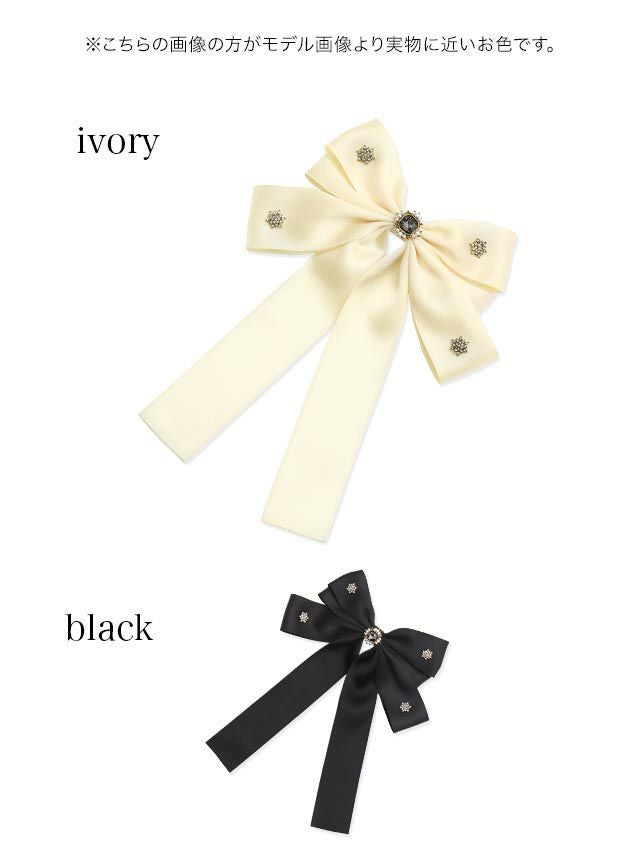 ビジュー付きロングリボンバレッタヘアアクセサリーのカラバリ画像
