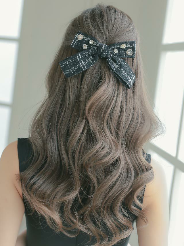 3. キラキラビジュー付きツイードリボンバレッタヘアアクセサリー