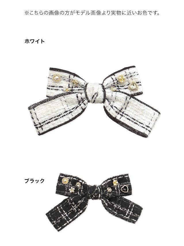 キラキラビジュー付きツイードリボンバレッタヘアアクセサリーのカラバリ画像