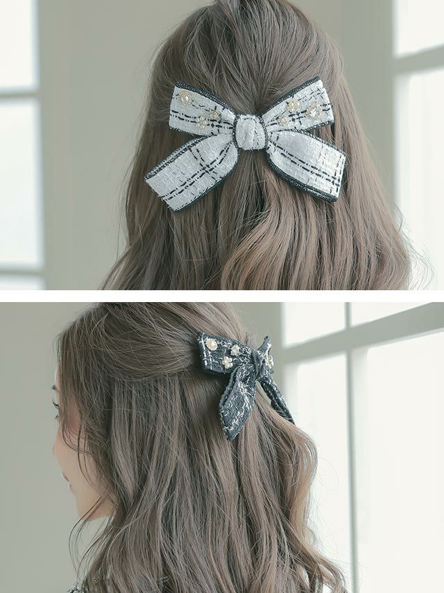 ガーリーな可愛さを演出♪ ビジュー×ツイードリボンバレッタヘアアクセサリー