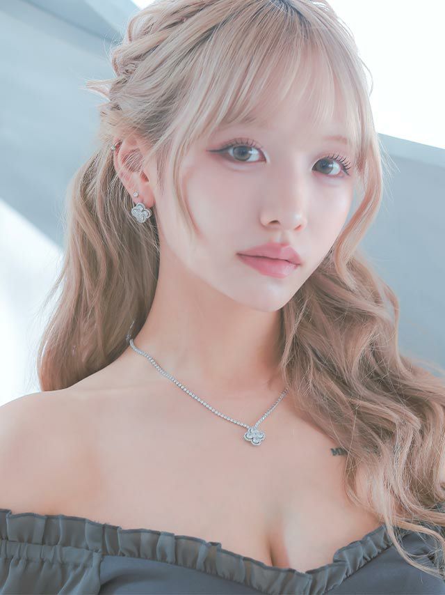 3. クローバー フラワーモチーフ キラキラビジュー アクセサリー 2点セット [ネックレス+ピアス]