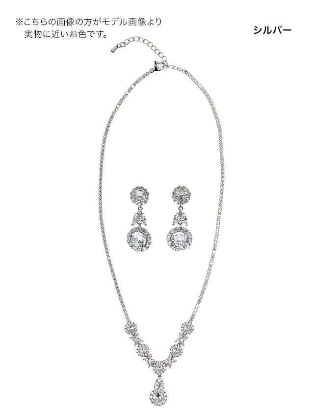 ワンランク上の大人女性に導く♪ エレガント フラワー キラキラ ストーン アクセサリー 2点セット [ネックレス+ピアス]