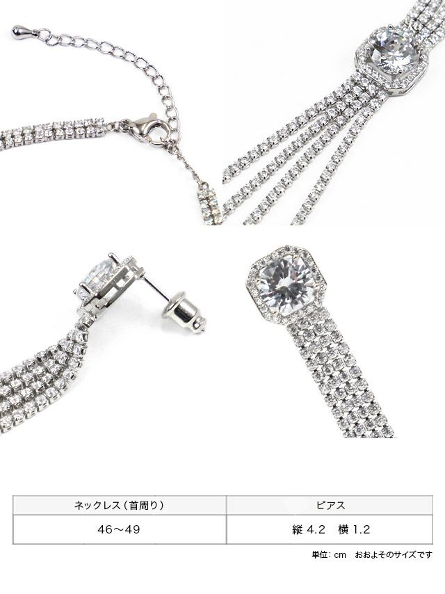 揺れるキラキラストーンに目を奪われる☆ タッセル キラキラ ストーン アクセサリー 2点セット [ネックレス+ピアス]