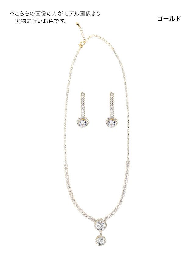 どんなドレスともマッチする♪ ラウンドビジューゴールドアクセサリー2点セット [ネックレス+ピアス]