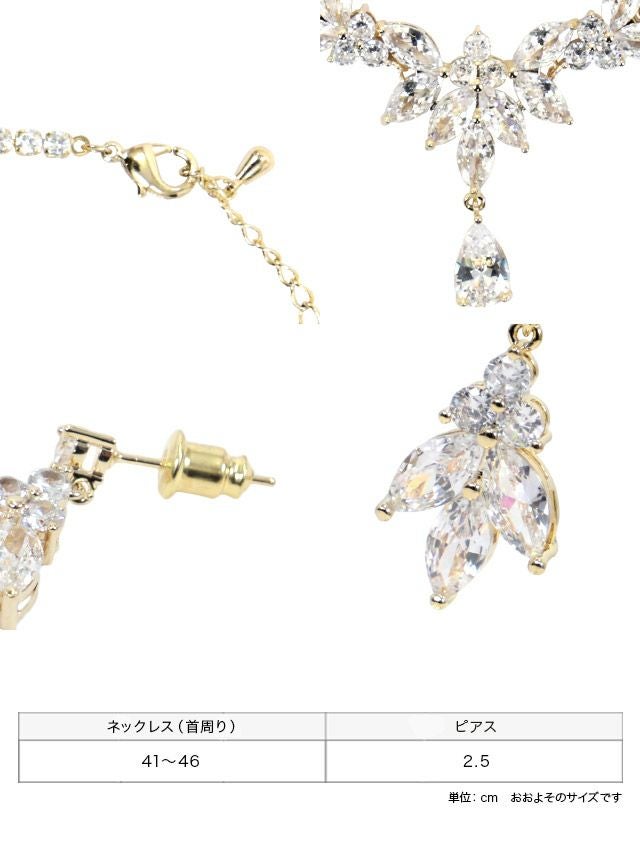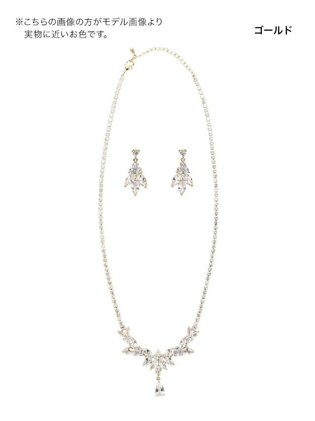3. リーフ マーキスカット ビジュー アクセサリー 2点セット [ネックレス+ピアス]
