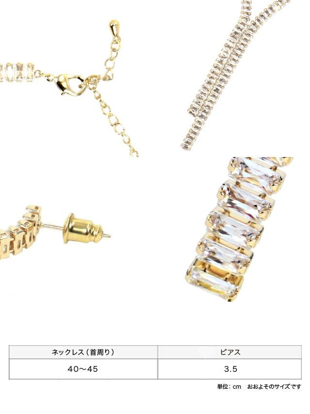 3. [SALE] アシンメトリーYラインビジューゴールドアクセサリー2点セット [ネックレス+ピアス]