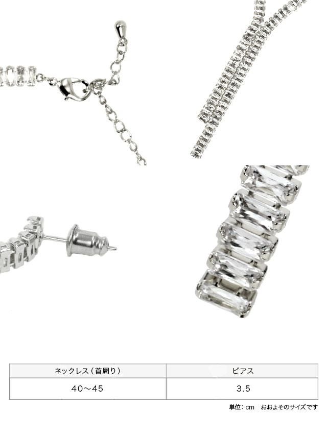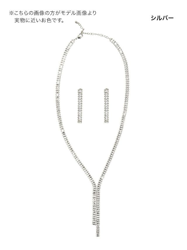 ゴージャス顔にメイク♪ [SALE] アシンメトリー Yライン ビジュー シルバー アクセサリー 2点セット [ネックレス+ピアス]