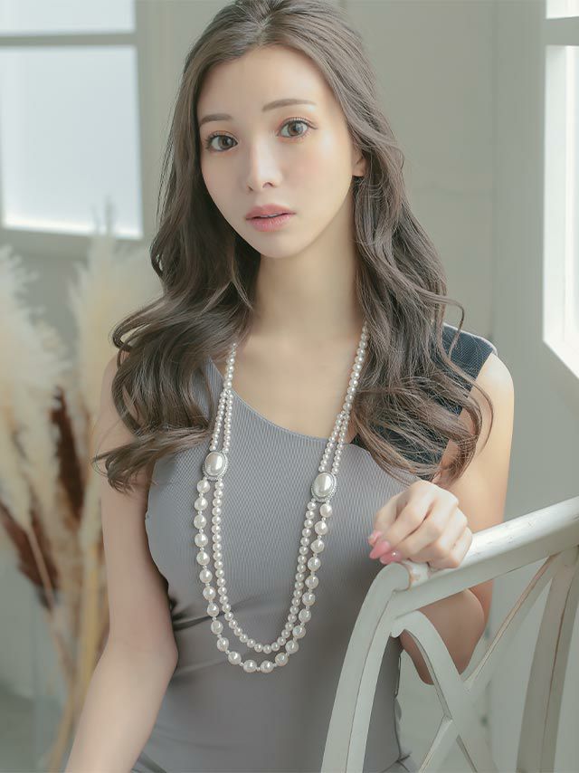 ビジューフレームパールロング2連ネックレスのイメージ画像1