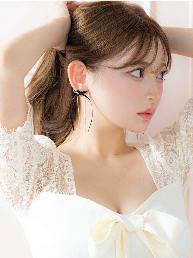 ゴールドチェーンロングリボンピアスのイメージ画像2