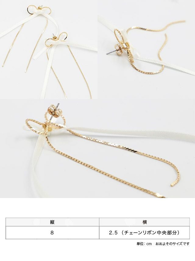 ゴールドチェーン ロング リボン ピアス