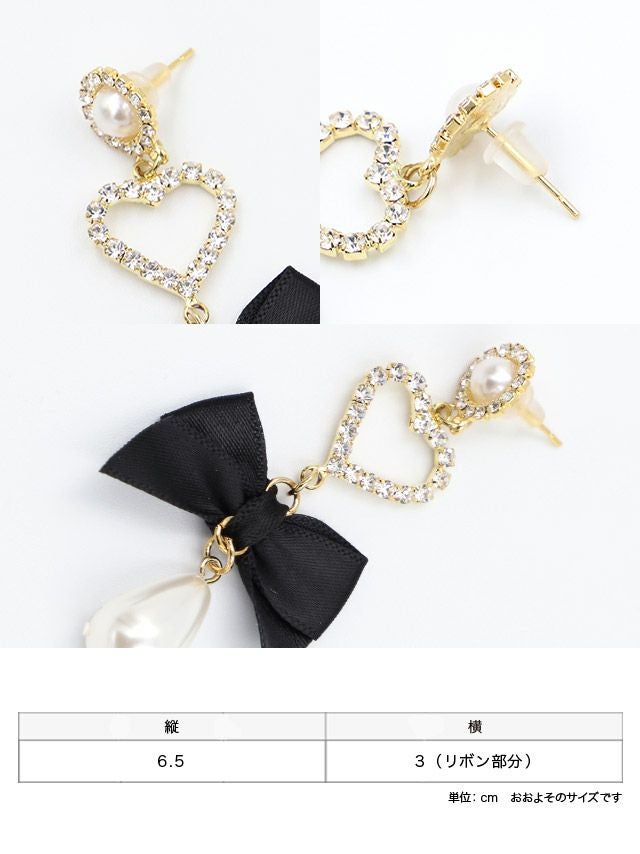 ハートデザインパールドロップリボンピアス