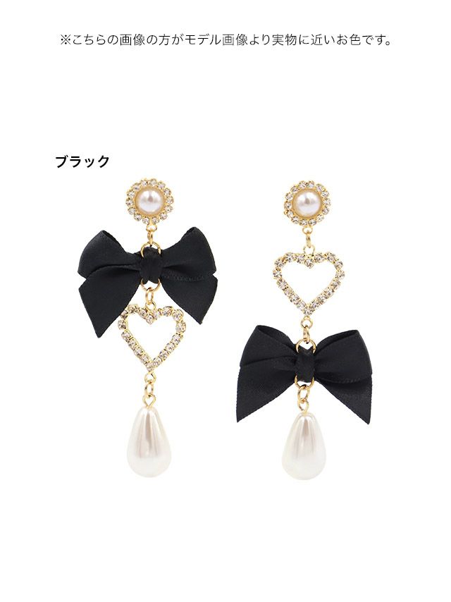 ハートデザインパールドロップリボンピアスのイメージ画像2