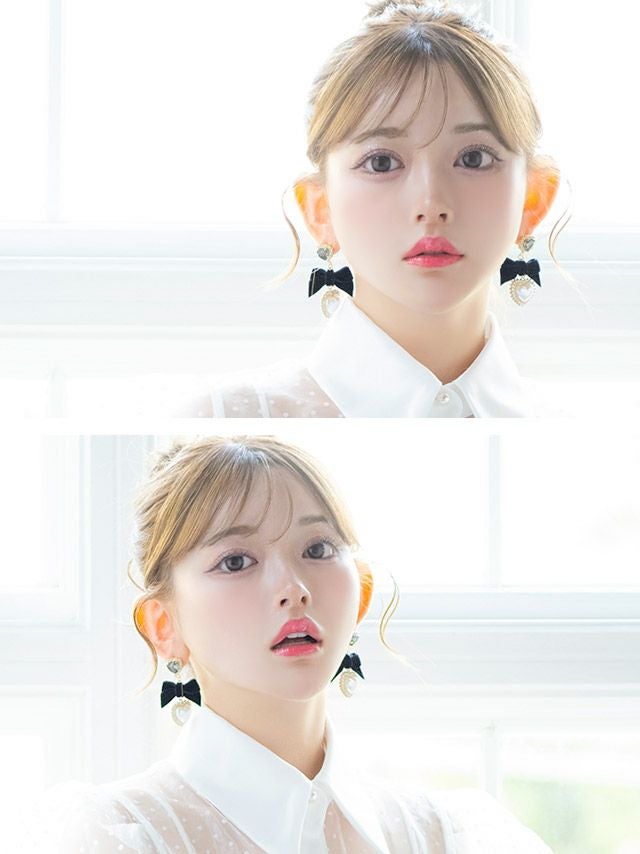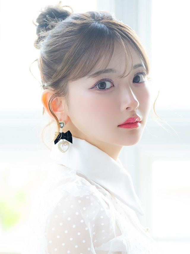 パールハートビジュー付きベロアリボンピアスのイメージ画像2