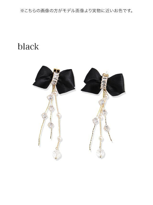 チラッ覗く耳元も可愛くガーリーに♪ ロングチェーンビジュー付きリボンピアス