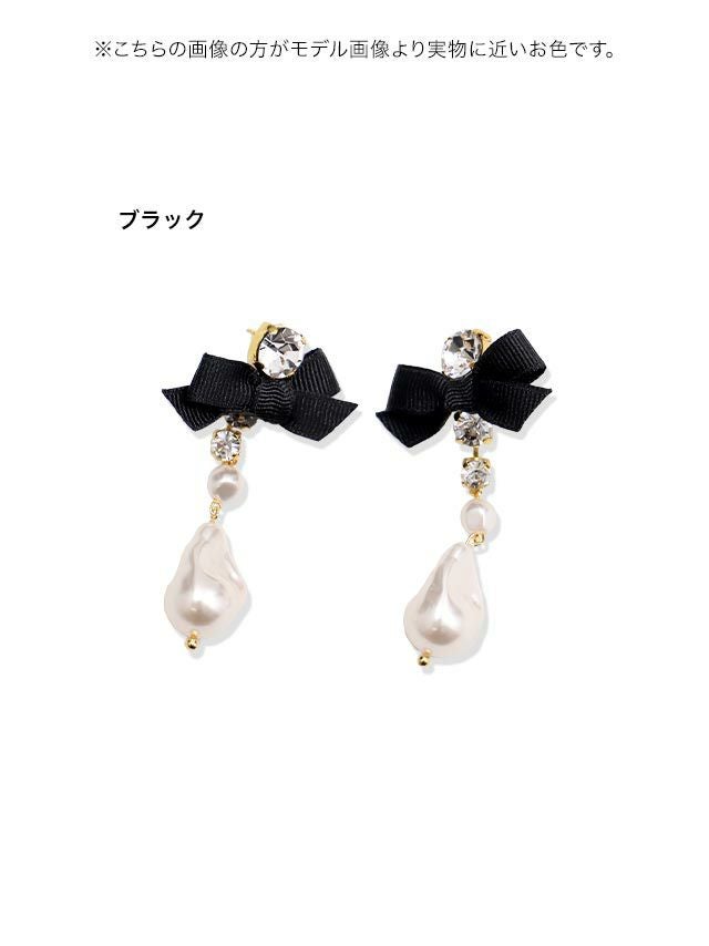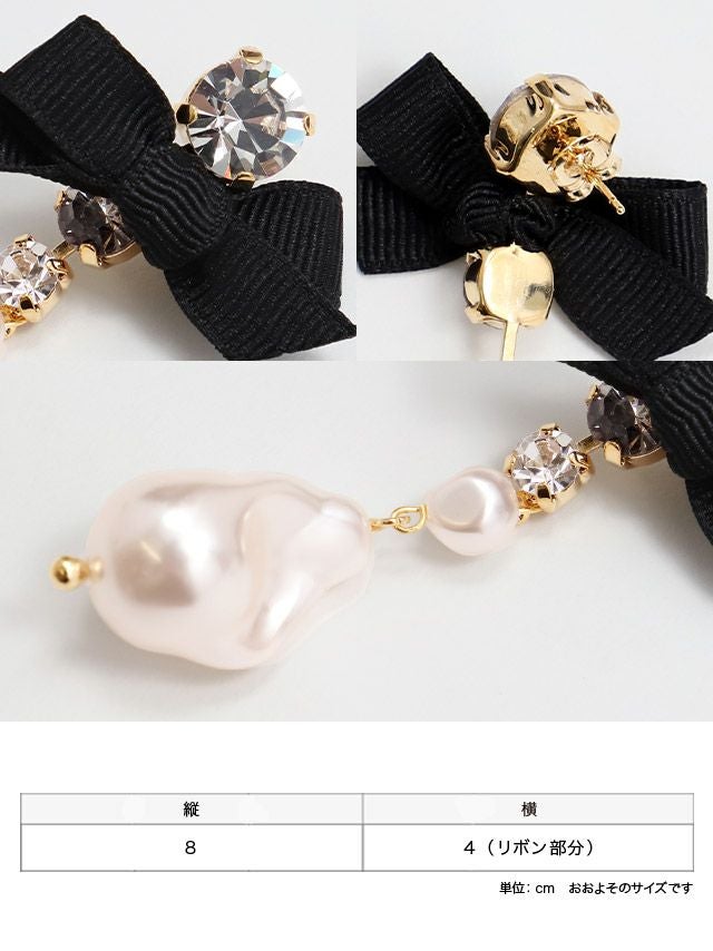 変形パールビジューリボンピアス