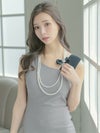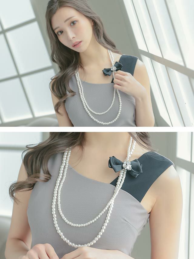 4. リボン付きパール2連ロングネックレス