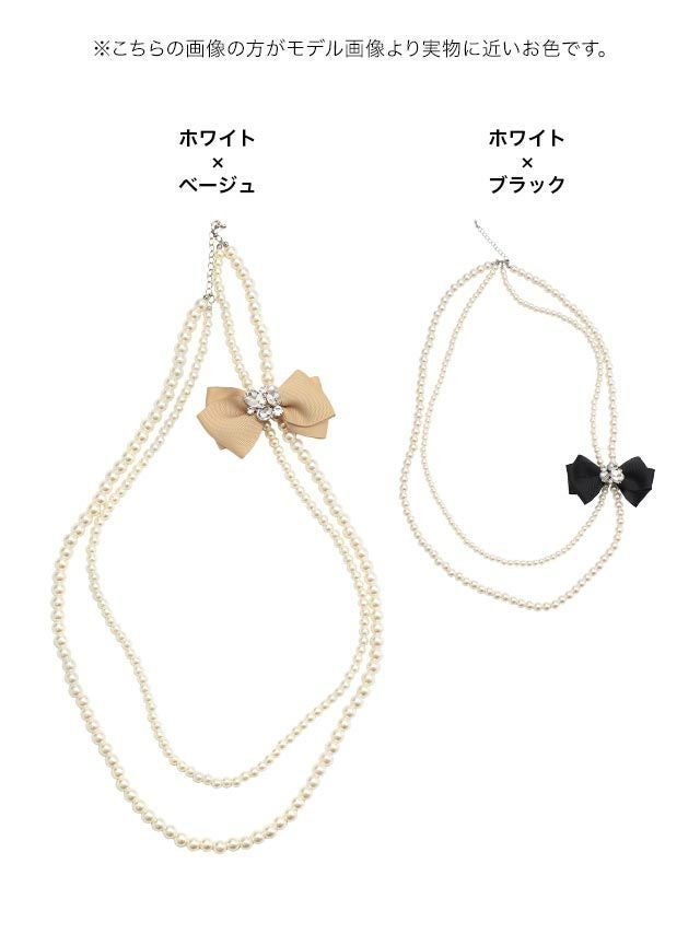 リボン付きパール2連ロングネックレスのイメージ画像1