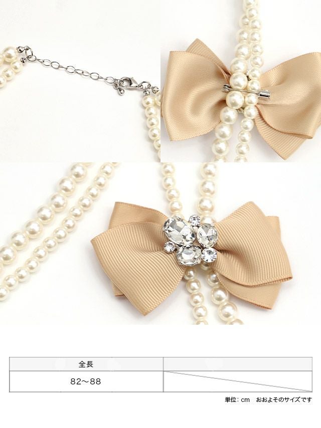 リボン付きパール2連ロングネックレスのディティール、サイズ"
