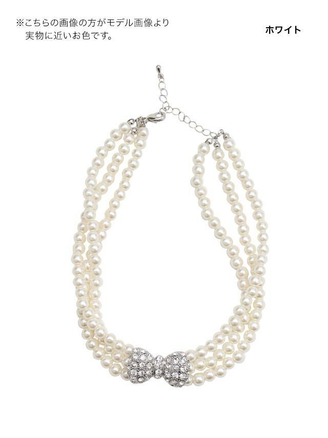 お顔周りを更に可愛く引き立てる♪ 3連パールビジューリボンチョーカーネックレス