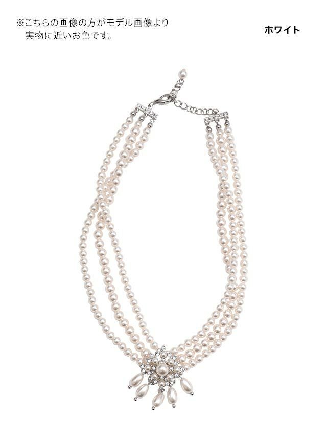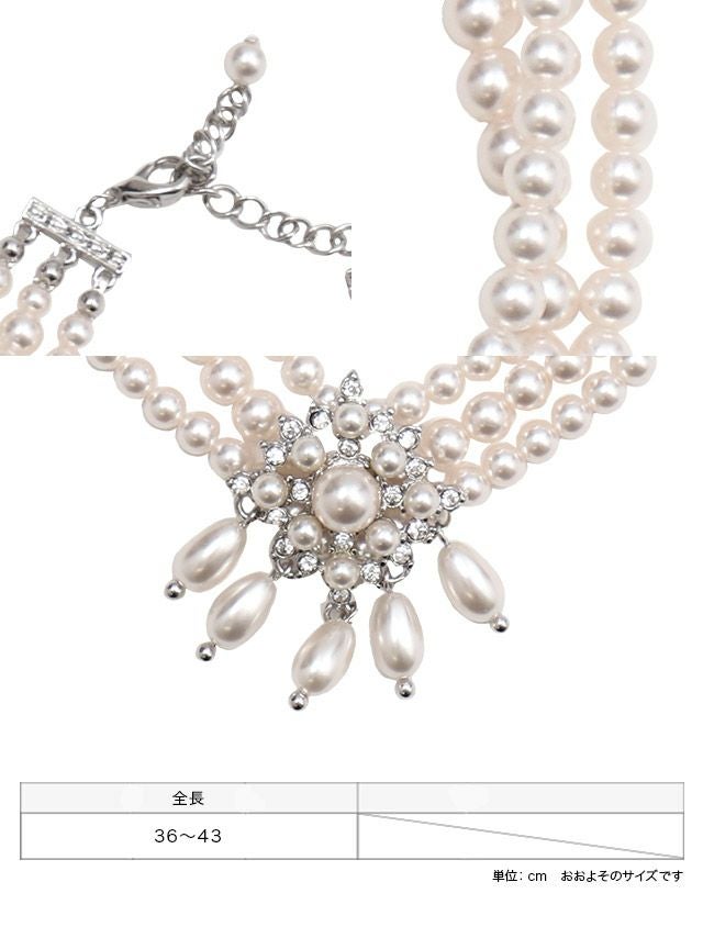 お顔周りを明るく華やかに演出♪ フラワーモチーフ3連パールチョーカーネックレス