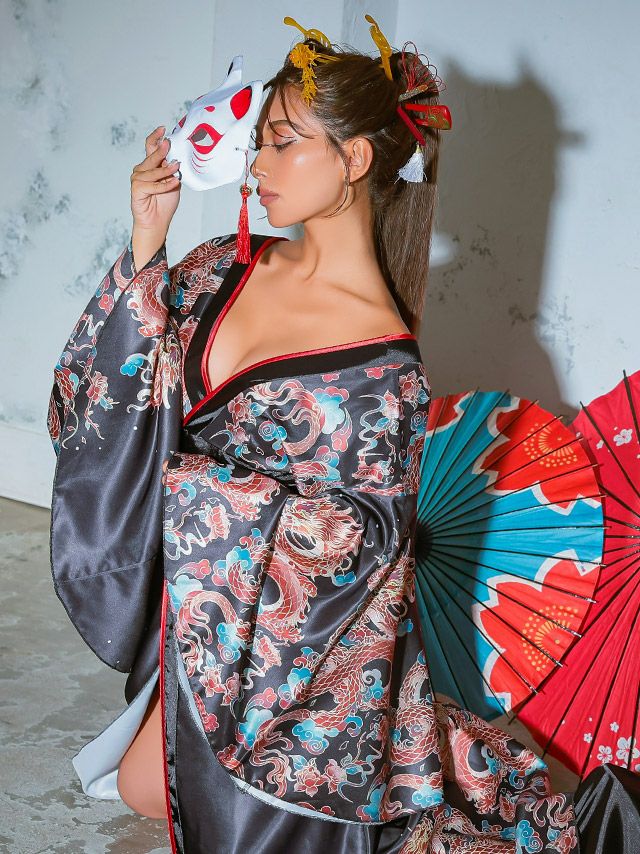 ドラゴンをプリントした花魁コスチューム☆