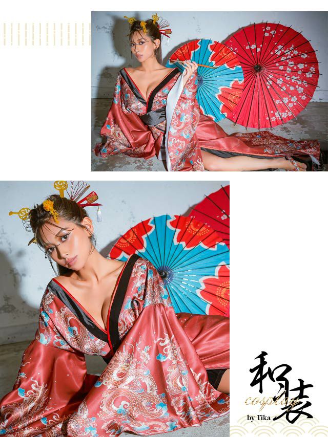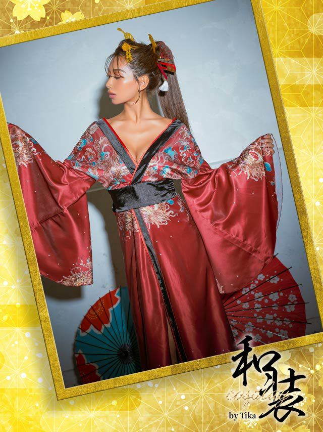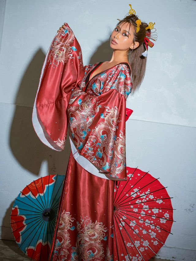5. [SALE] コスプレ 花魁 桜まつり サテンゴージャス ドラゴンプリント 谷間 セクシー 和装ドレス [1点] (着物ドレス)