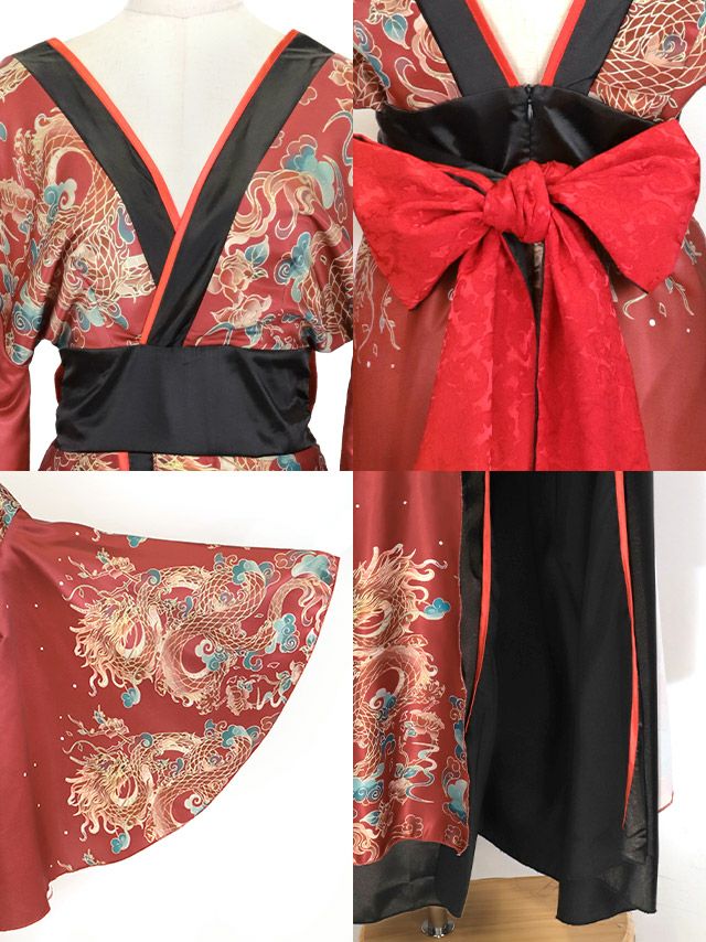 4. [SALE] コスプレ 花魁 桜まつり サテンゴージャス ドラゴンプリント 谷間 セクシー 和装ドレス [1点] (着物ドレス)