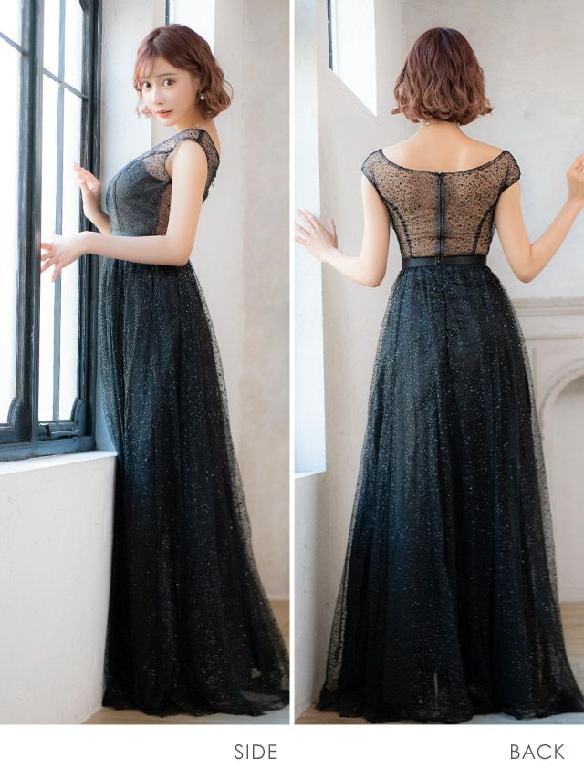 オフショルダー バストシースルー ラメ ハイウエスト 谷間魅せ Aラインロングドレスのカラーバリエーション