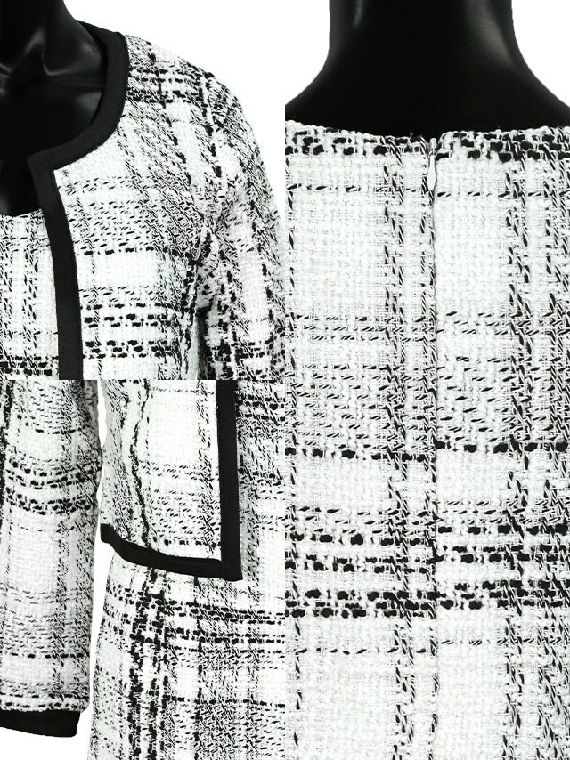 モノトーンチェックノーカラーツイードジャケットワンピースセットアップ スーツ