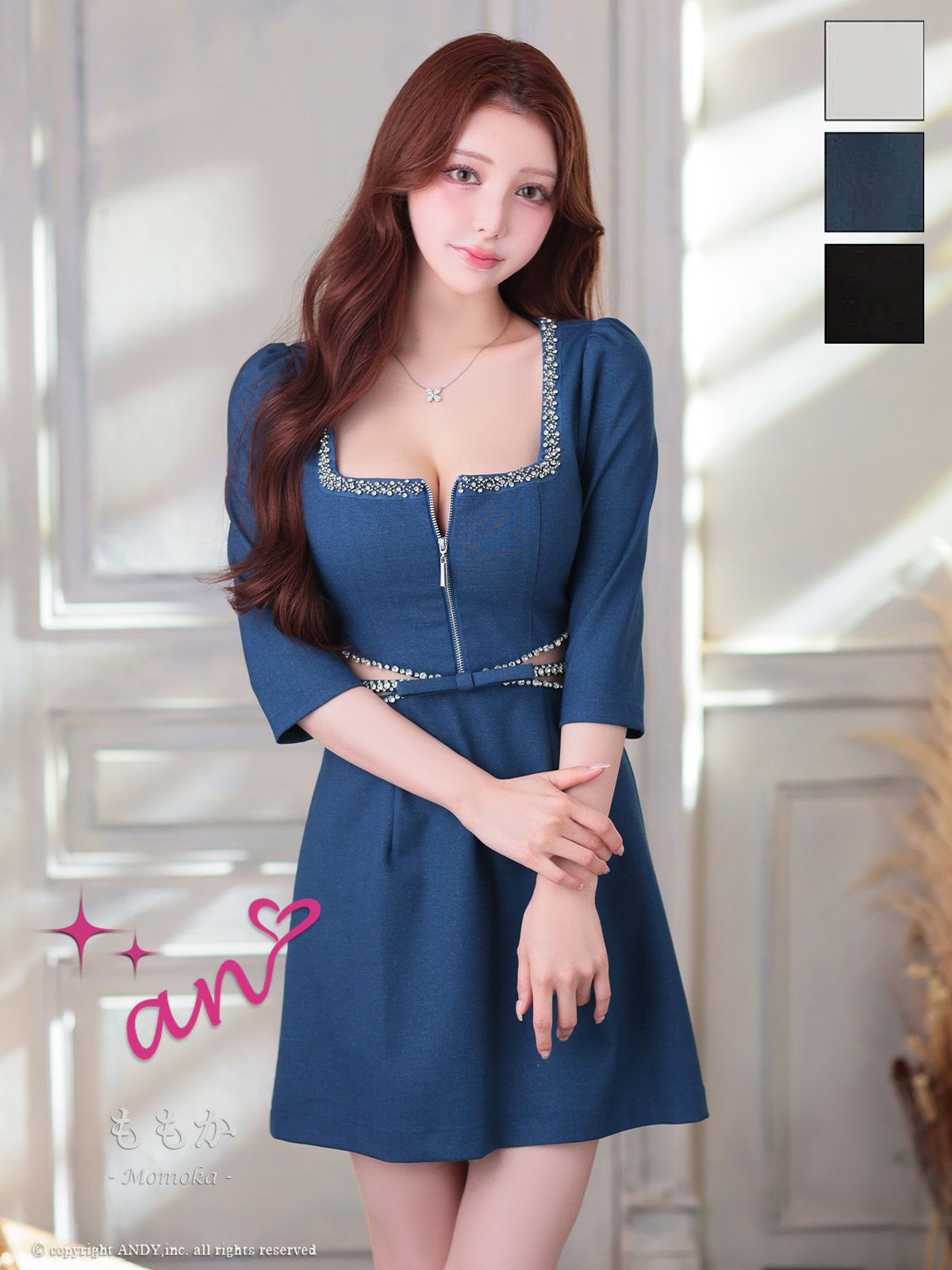 他の画像を見る 紐部分のビジューが高級感をアップしてくれる♡ [an/アン] 高級 キャミソール フレアミニドレス バストカット ジップ ビジュー プリーツ バイカラー ¥ 26,400 税込 お気に入りに追加
