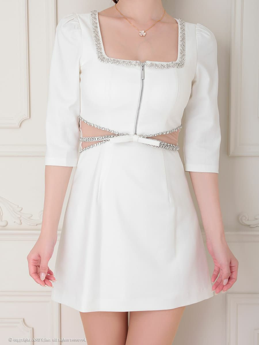 他の画像を見る 胸元のジップがsexy♡ [an/アン] 高級 ブランド Aラインミニドレス フリル セットアップ ノースリーブ ウエストリボン ジップ ビジュードット ¥ 29,700 税込 お気に入りに追加