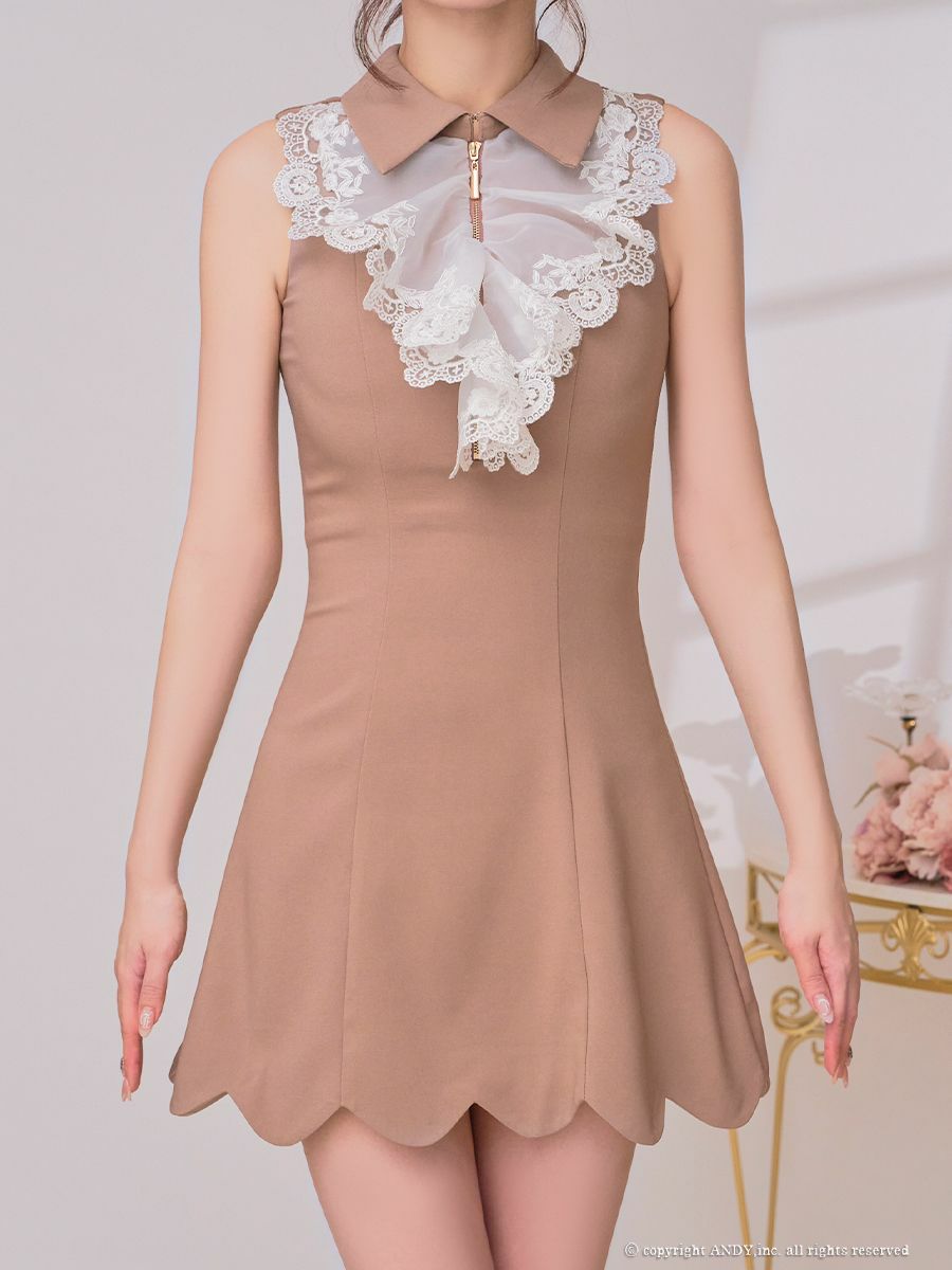 他の画像を見る 露出控えめなデザイン♡ [an/アン] 高級 ブランド ワンピース Aライン ミニドレス レース ノースリーブ 襟付き ジップ ブラジャーのまま バストカット ¥ 26,400 税込 お気に入りに追加