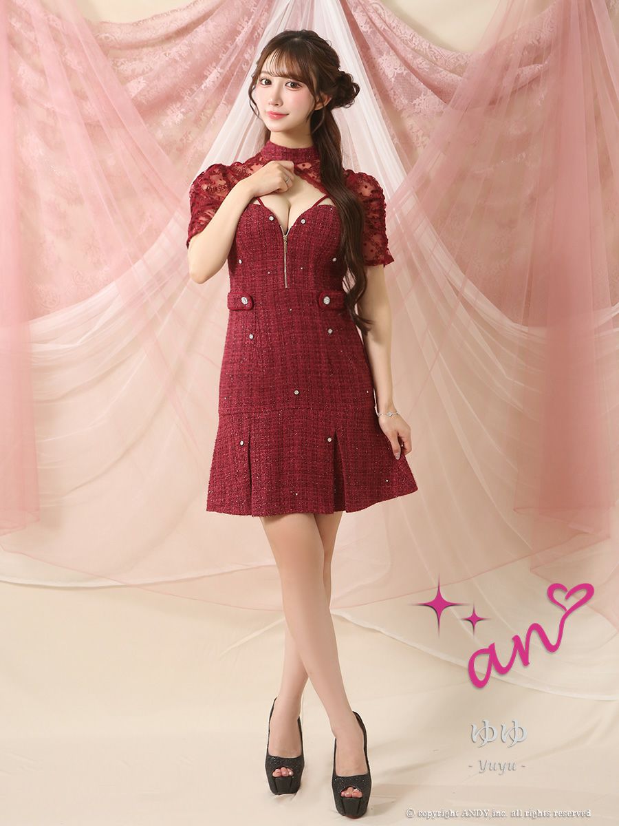 他の画像を見る ビジュードットで高級感♡ [an/アン] 高級 ブランド Aラインミニドレス フリル セットアップ ノースリーブ ウエストリボン ジップ ビジュードット ¥ 29,700 税込 お気に入りに追加
