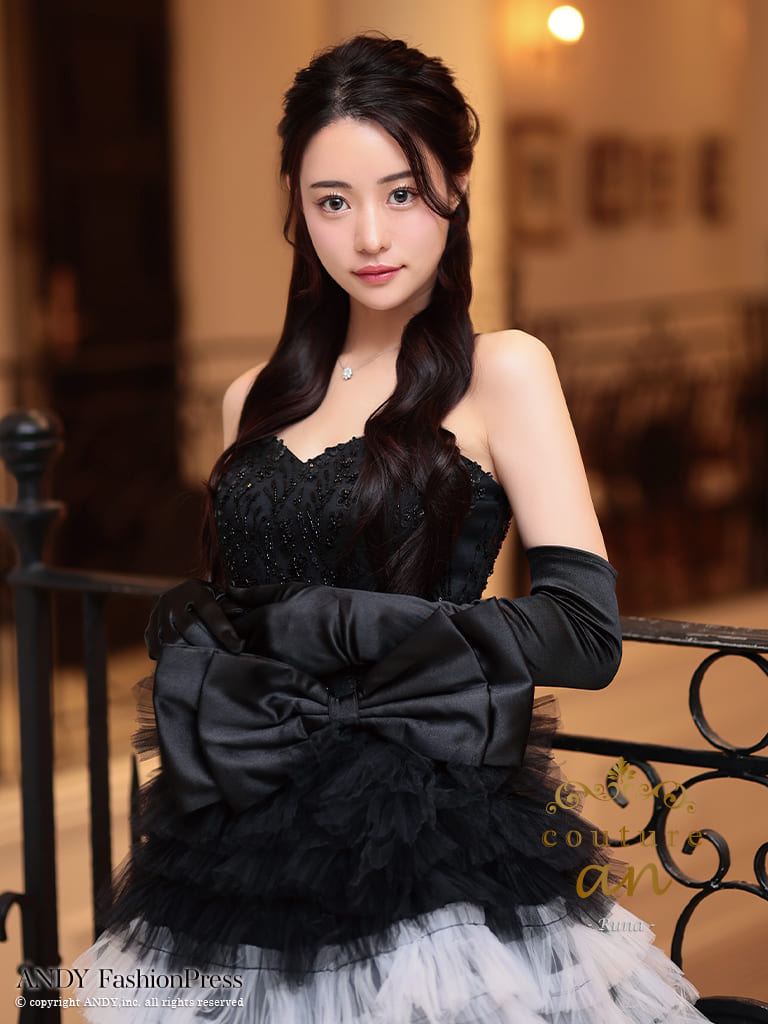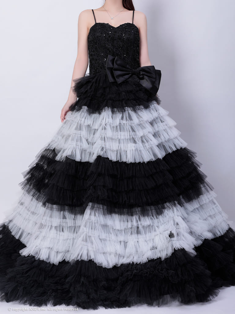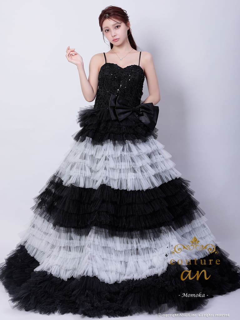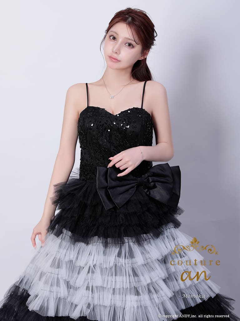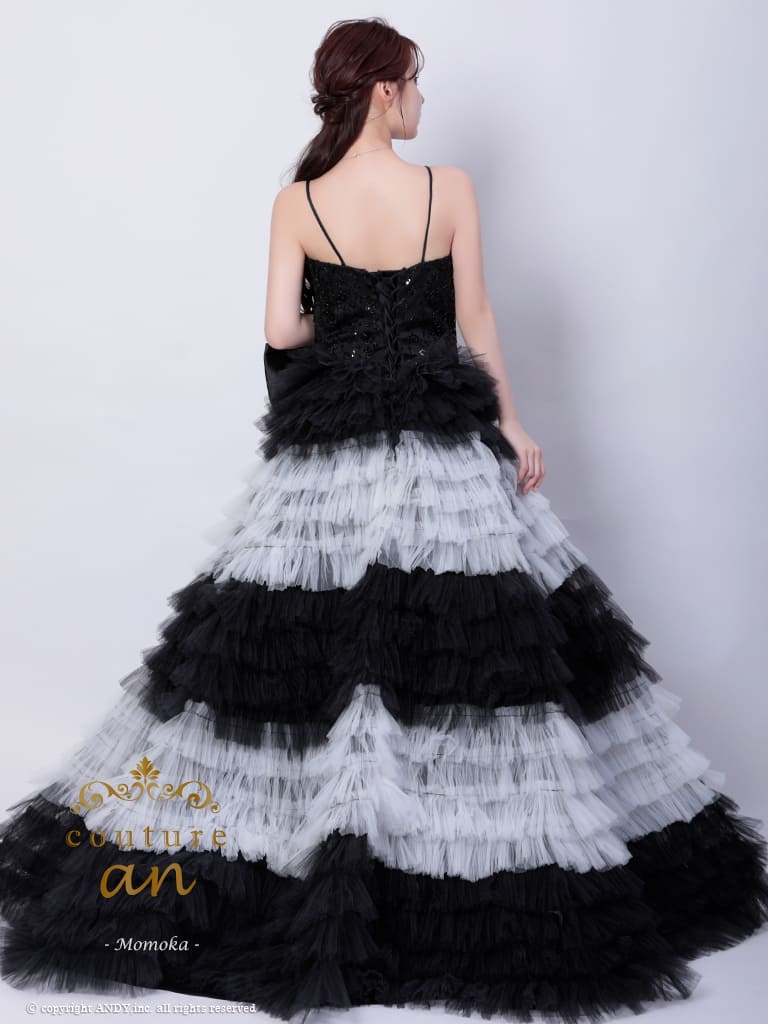 5. [couture an/クチュールアン] 高級 バースデー キャミソール ビジュー スパンコール リボン チュール フリル Aラインロングドレス