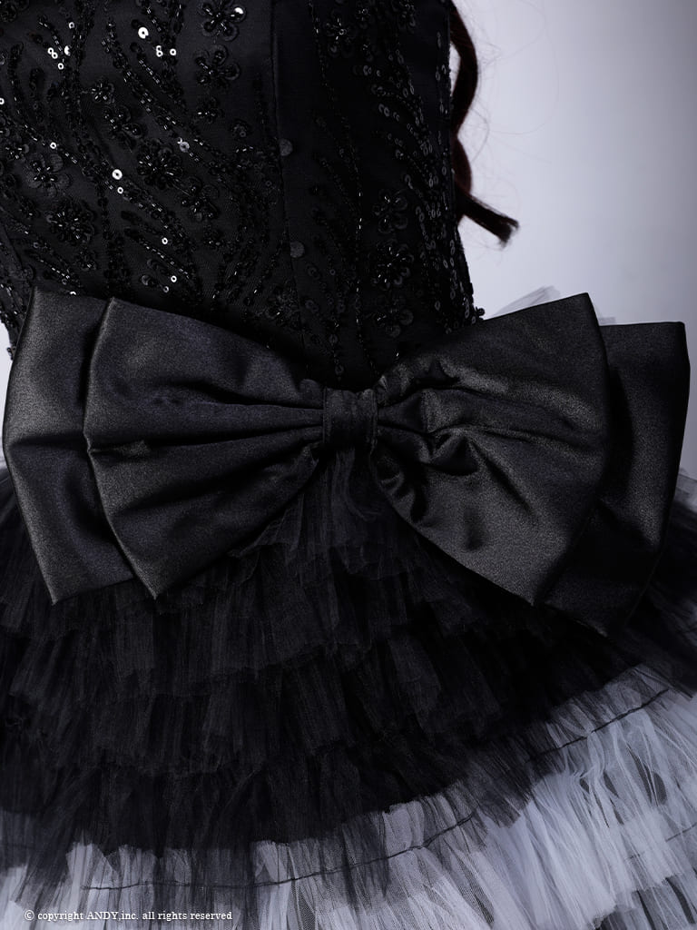 大きめリボンが華やかでゴージャス☆ [couture an/クチュールアン] 高級 バースデー キャミソール ビジュー スパンコール リボン チュール フリル Aラインロングドレス