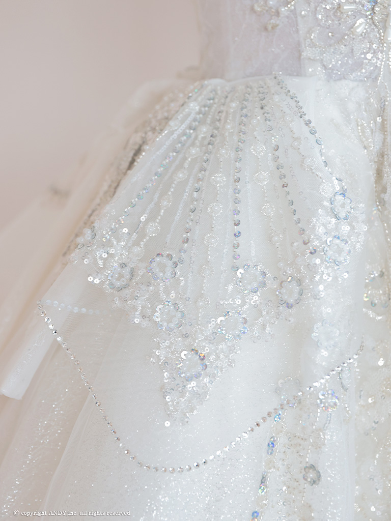 5. [couture an/クチュールアン] 高級 バースデー オフショルダー ビジュー 刺繍 レース ボリューム フリル Aラインロングドレス