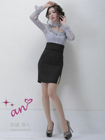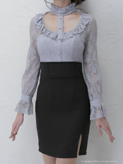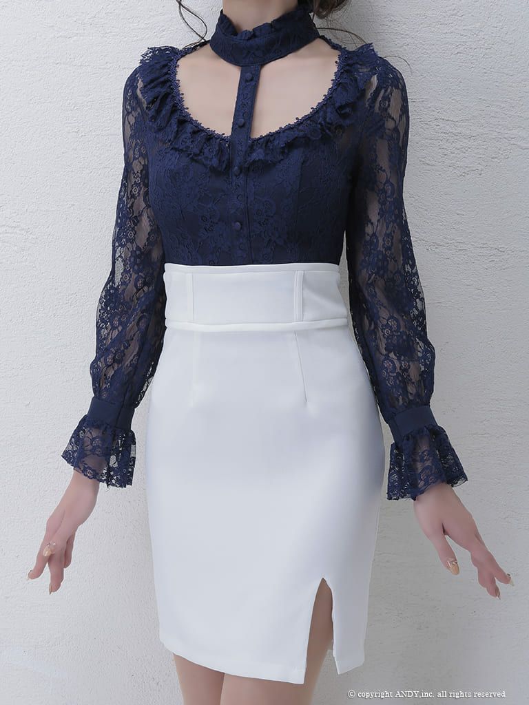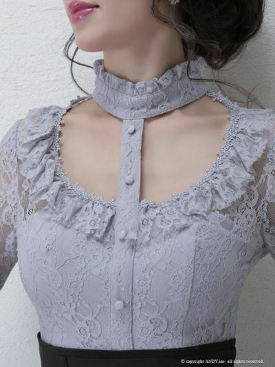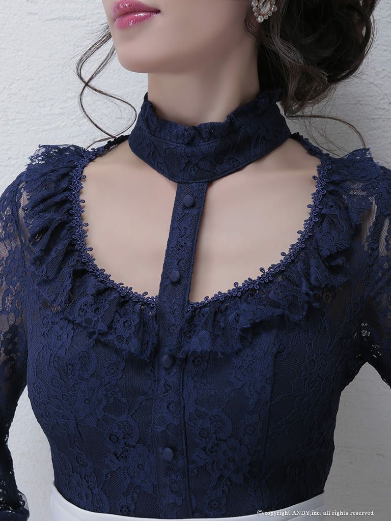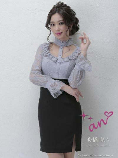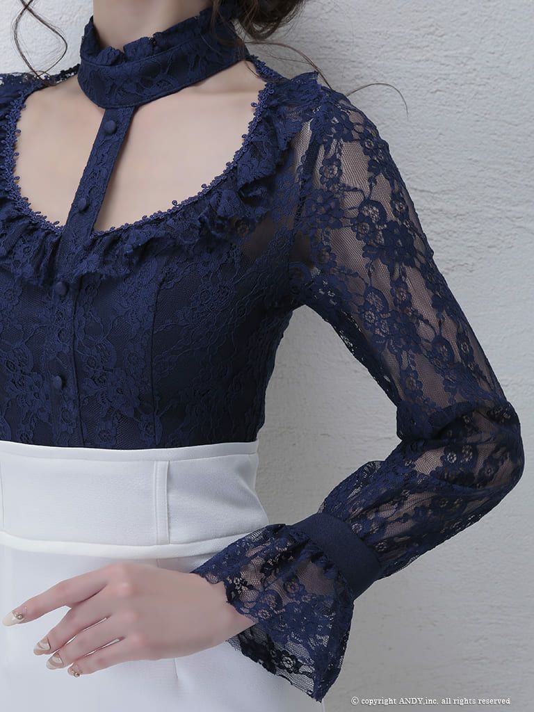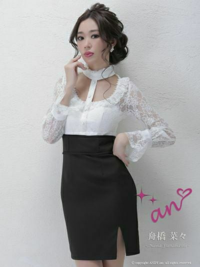 お顔周りを色っぽく華やかに演出☆ [an/アン] 高級チョーカー風カットアウトレース切替長袖 袖ありタイトミニドレス