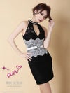 5. SALE [an/アン] 高級 ホルターネック バストカット ウエストベルト フラワーレース 谷間魅せ タイトミニドレス