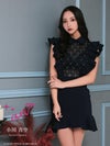 5. [an/アン] 高級襟付きデコルテシースルービジューウエスト切替フリルノースリーブタイトミニドレス