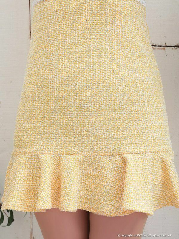 裾フリルでキュートさUP☆ [an/アン] 高級スクエアネックバイカラーデザインツイード半袖タイトミニワンピースドレス