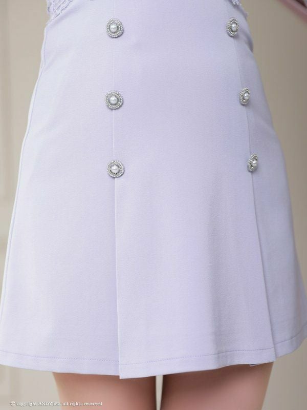 5. [an/アン] 高級 袖あり ハイネック バストカット フラワー刺繍レース ダブルボタン プリーツ 谷間魅せ フレアミニドレス