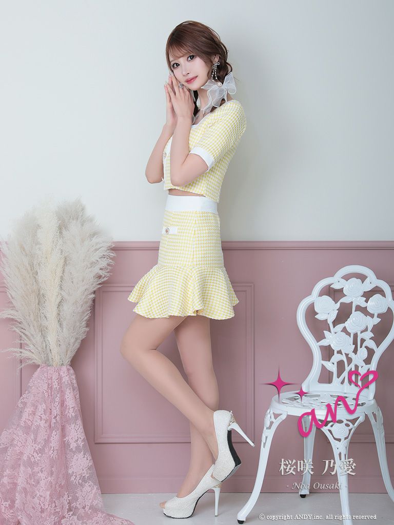 6. [an/アン] 高級パステルカラー千鳥格子柄半袖セットアップフレアミニドレス