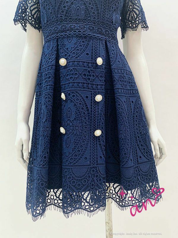 パールボタンが大人可愛い一着☆ [an/アン] 高級ワンカラースカラップレースフロントダブルボタン半袖フレアミニドレス