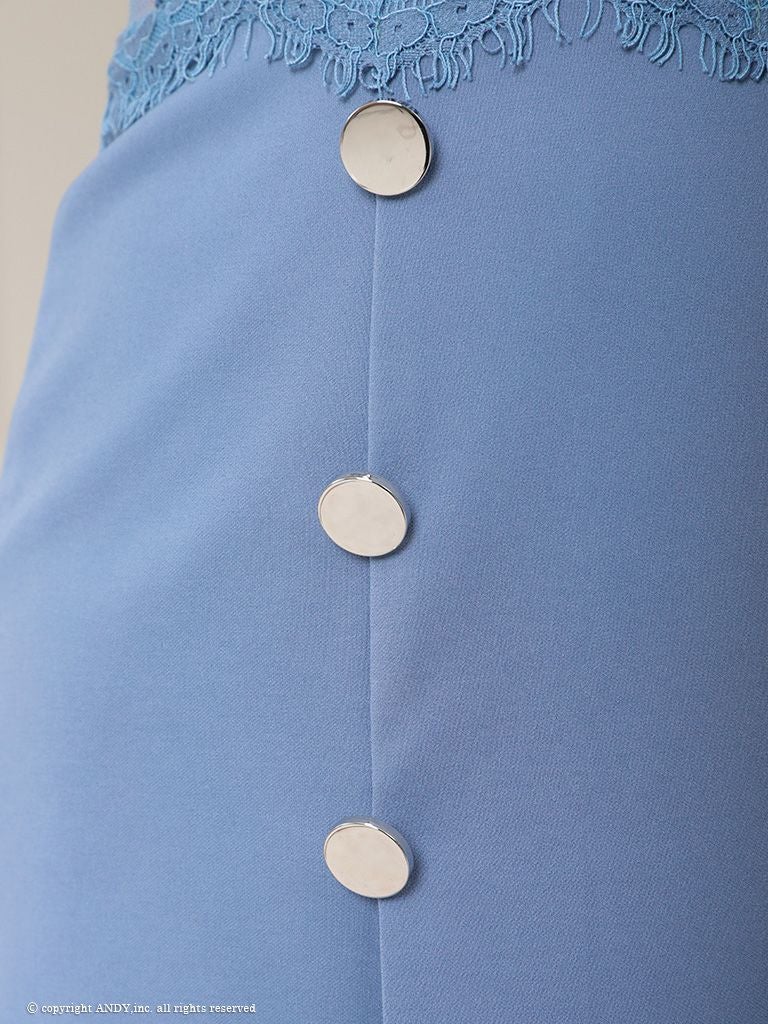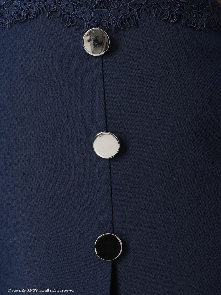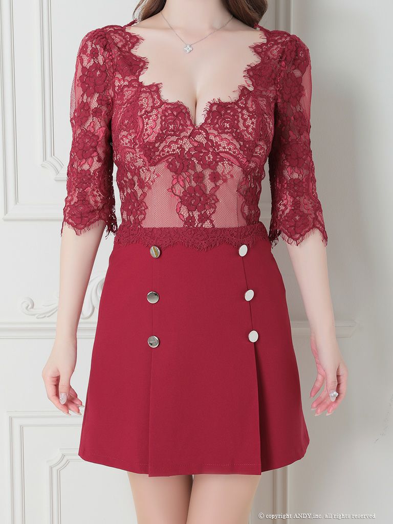 5. [an/アン] 高級袖ありヌーディーカラーレースウエスト切り替えダブルゴールドボタンボックスフレアミニドレス