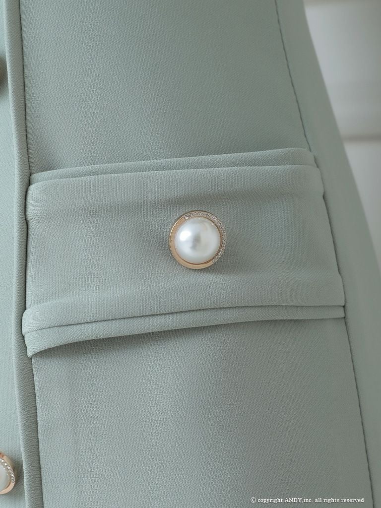 4. [an/アン] 高級パールボタンワンカラーショルダーフリルノースリーブタイトミニドレス