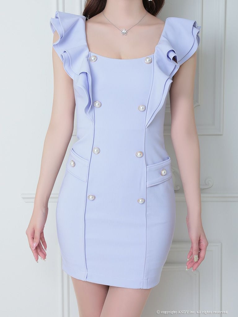 5. [an/アン] 高級パールボタンワンカラーショルダーフリルノースリーブタイトミニドレス