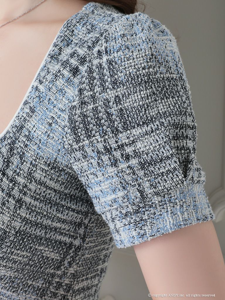 5. SALE [an/アン] 高級スクエアネックツイード半袖タイトミニドレス