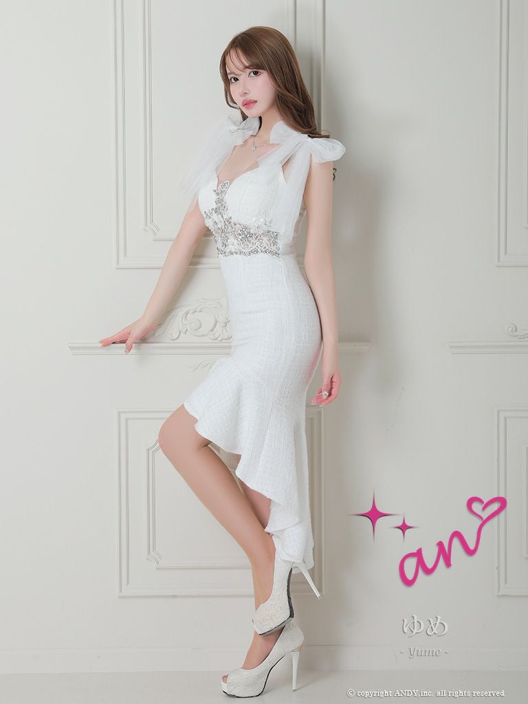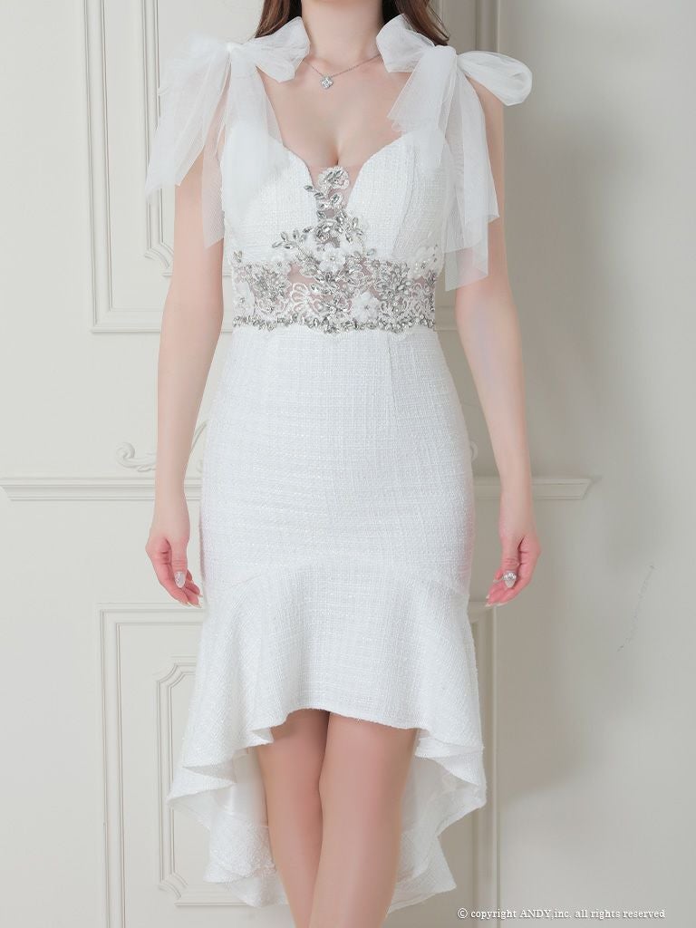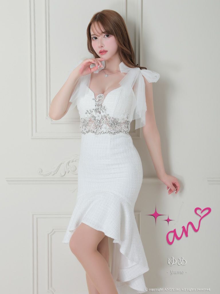 大人の色気溢れるマーメイドスタイル☆ [an/アン] 高級 チュールリボン キャミソール ツイード ランジェリー 膝丈ドレス