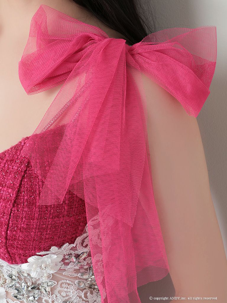5. [an/アン] 高級 チュールリボン キャミソール ツイード ランジェリー 膝丈ドレス